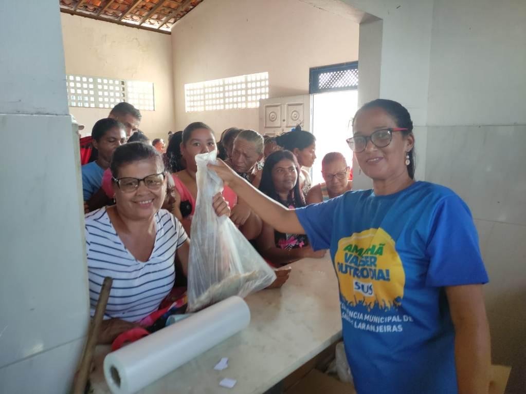No bairro Cedro a população recebeu o peixe pela manhã através da entrega do Kit Semana realizada pela Prefeitura de Laranjeiras e no período da tarde, foi a vez do vereador Chiozinho também ofertar o peixe para os moradores do Cedro.