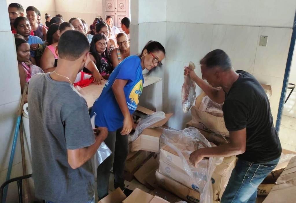 Veja como foi a distribuição do peixe ofertado pelo vereador Chiozinho na tarde de desta quarta-feira, 05, no Cedro: