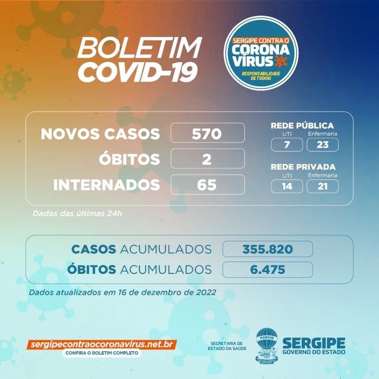 Dois óbitos também foram registrados. No total, em todo estado de SE. 355.820 pessoas testaram positivo para a Covid e 6.475 morreram.