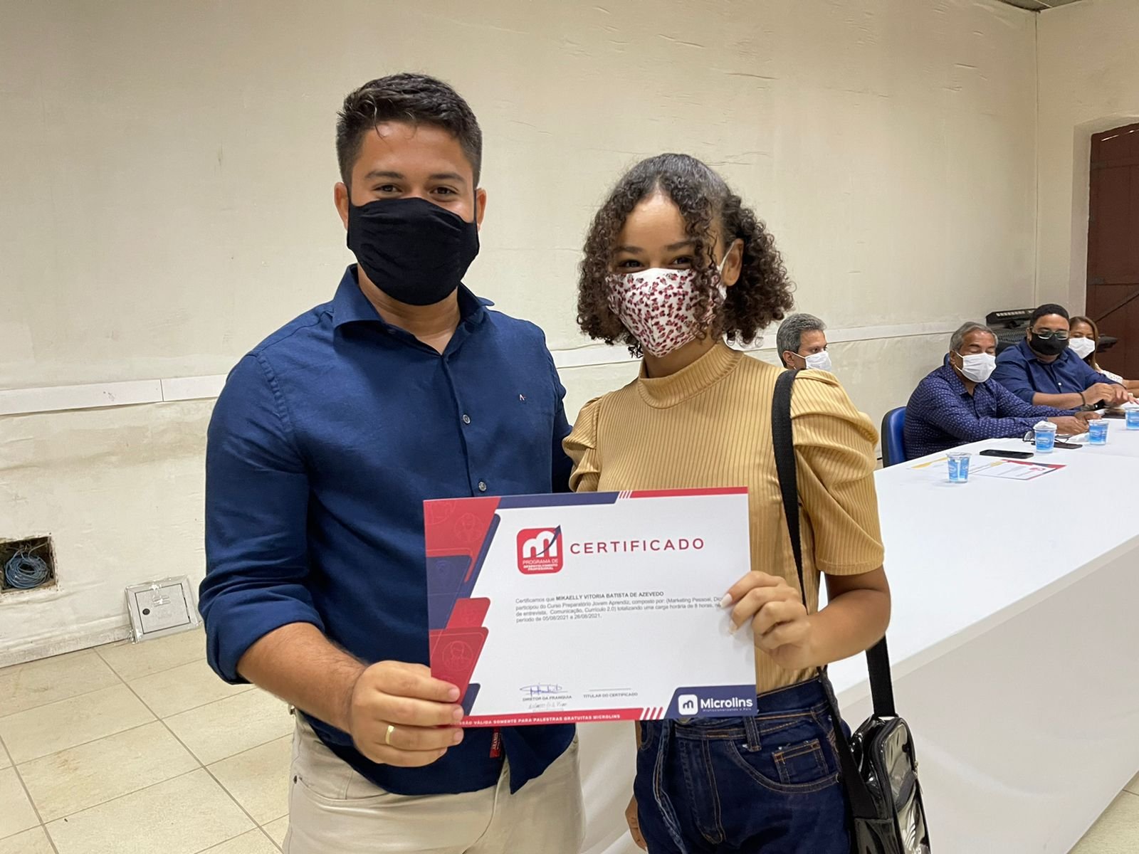 “Os nossos jovens estão tendo cada vez mais oportunidades. Mais duas turmas receberam nesta terça-feira, 5, os certificados dos cursos de Jovem Aprendiz e 1° Emprego, em parceria com a Microlins e informática Básica, em parceria com a CEJUV e Uninassau”, relata o vice-prefeito e sexretário de Indústria e Comércio Janio Dias.