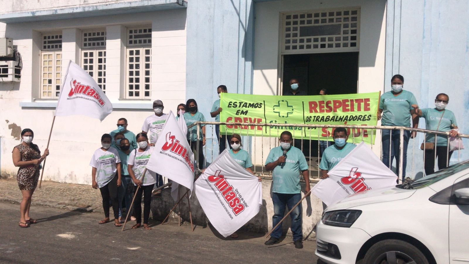 Servidores cobram o pagamento dos salários de dezembro de 2020 e do mês de agosto deste ano. (Foto: Sintasa)