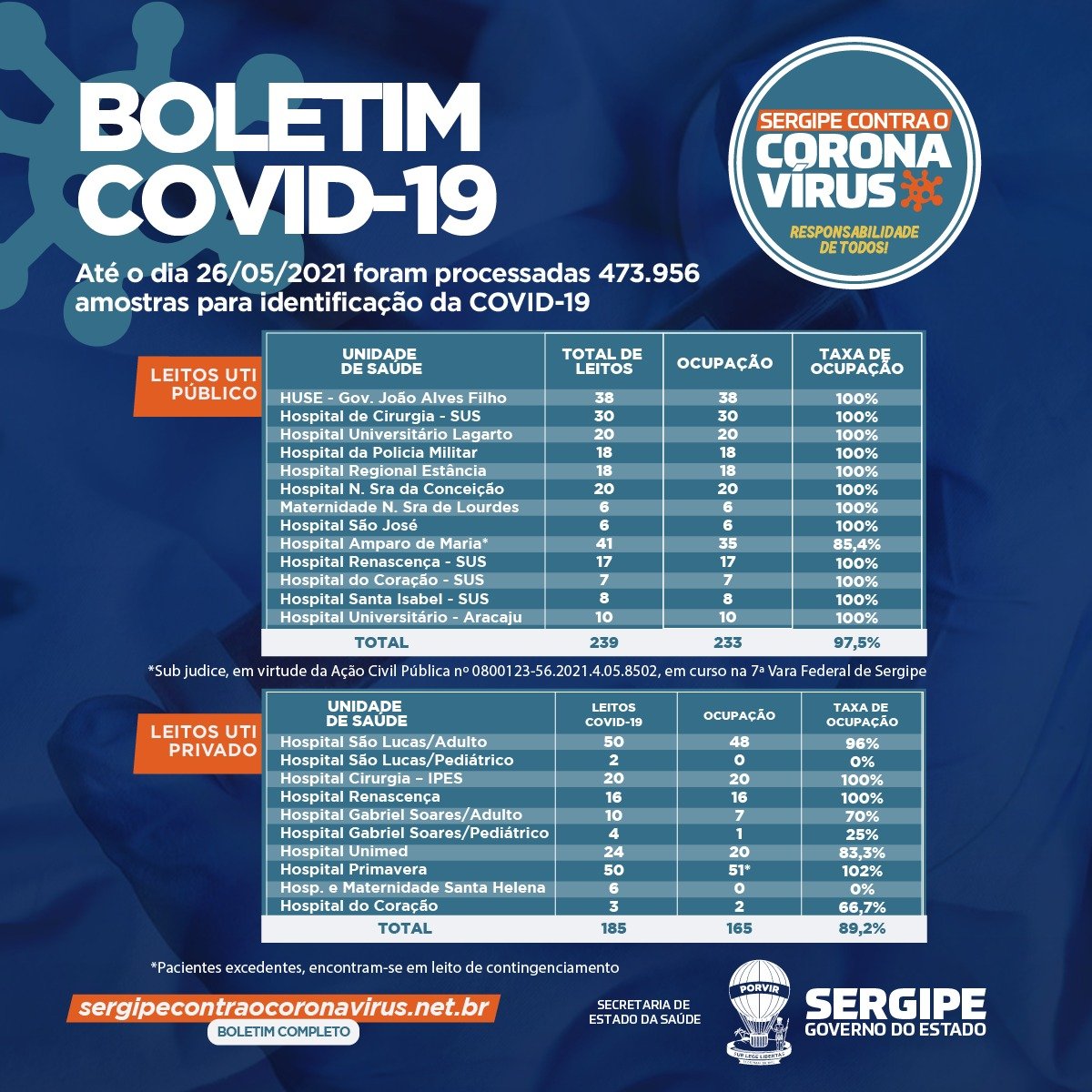 Confira mais detalhes sobre o novo boletim epidemiológico da Covid-19 em Sergipe: