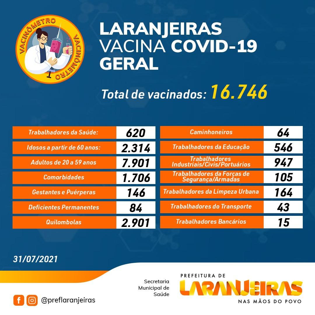Acompanhe também os números atualizados da pandemia da Covid-19 em Laranjeiras: