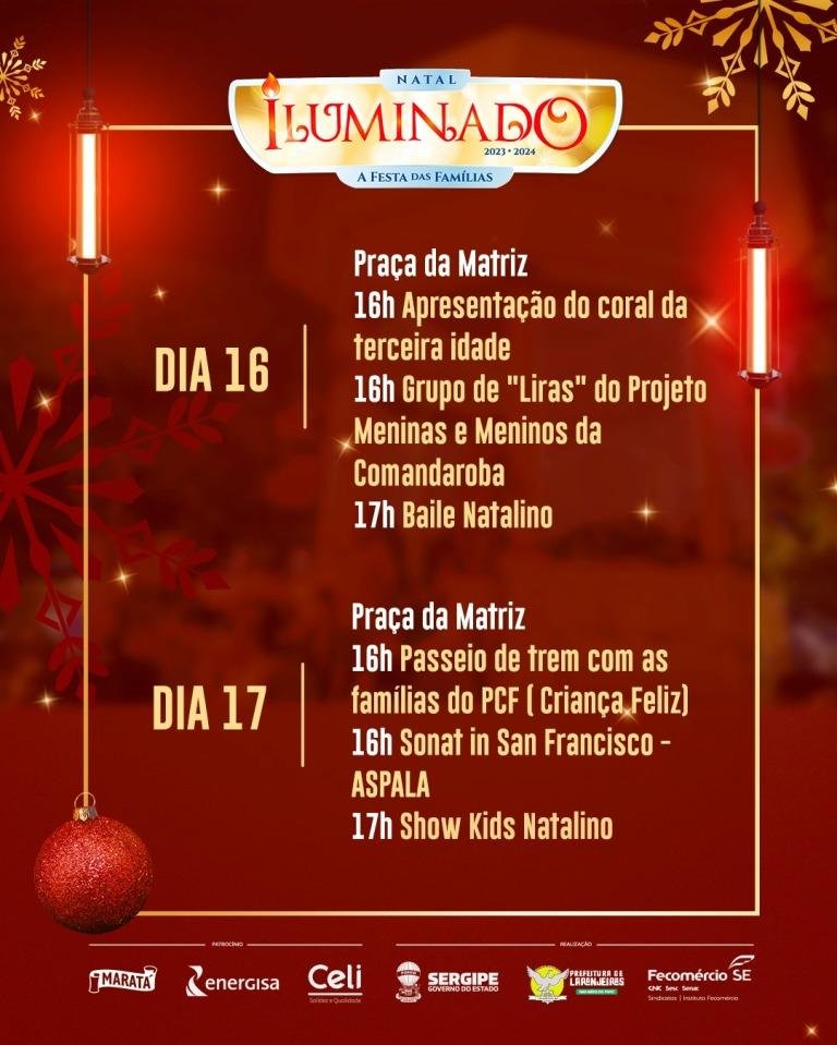CONFIRA PROGRAMAÇÃO DESTA SEMANA DO NATAL ILUMINADO DE LARANJEIRAS: