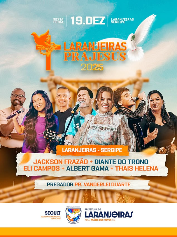O ‘Laranjeiras Pra Jesus 2025’ acontecerá a partir das 18h, na Avenida João Sapateiro, com atrações locais, estaduais e nacionais, além de momento de pregação e homenagem ao Dia da Bíblia.