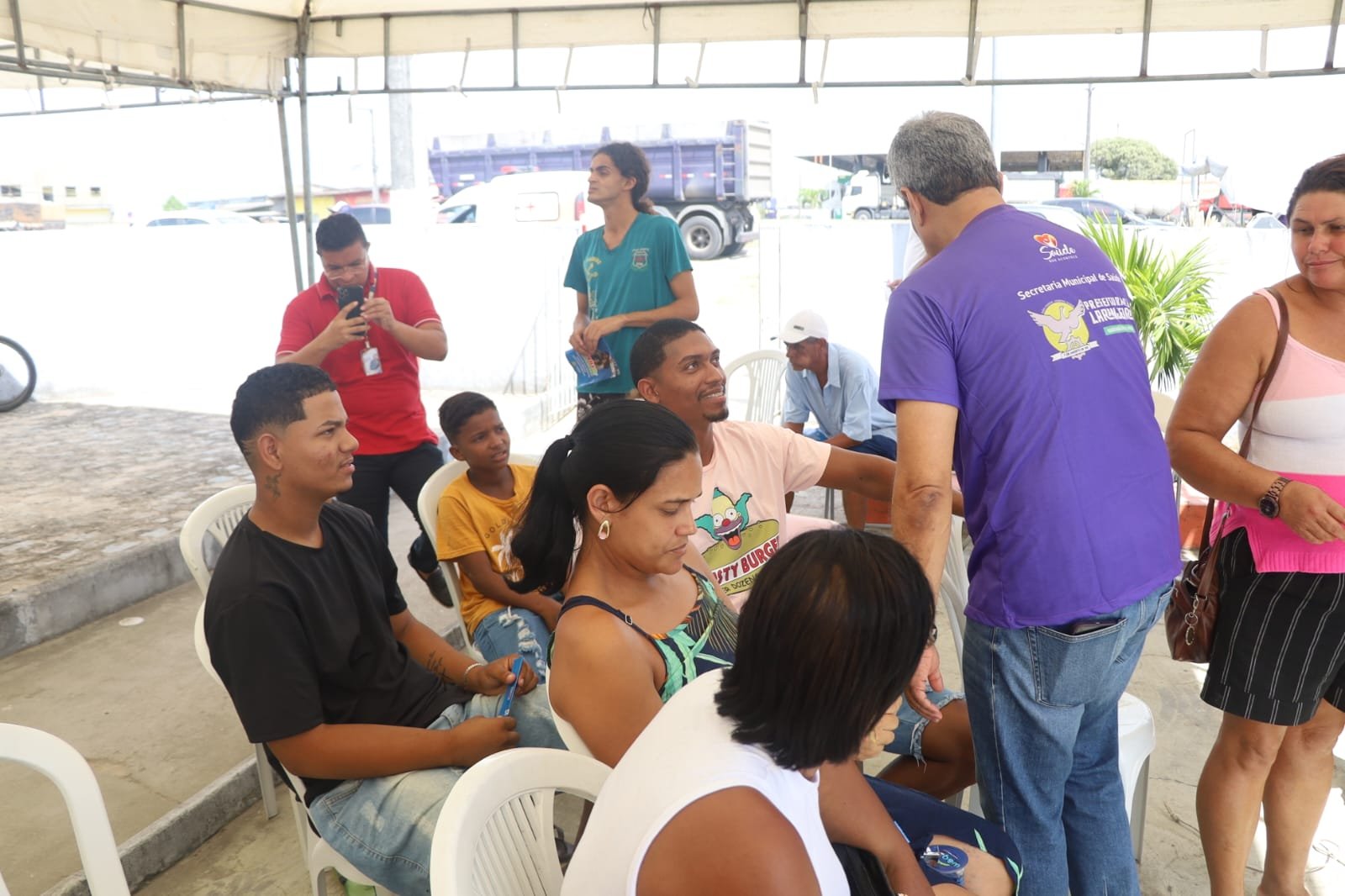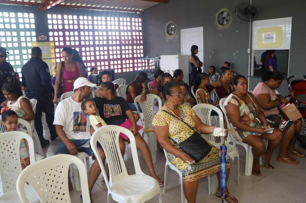 E hoje pela manhã, os atendimentos iniciaram logo cedo na Creche Bruna Hagenbeck, em Pedra Branca. Foram disponibilizados pela Secretaria de Saúde vários serviços: ultrassonografia, exames laboratoriais, urologia e clínico geral, serviços de odontologia, eletrocardiograma, odontomóvel, vacina, testes rápidos, marcação de exames, mais cirurgias, ginecologista e veterinária (consultas e vacinas).