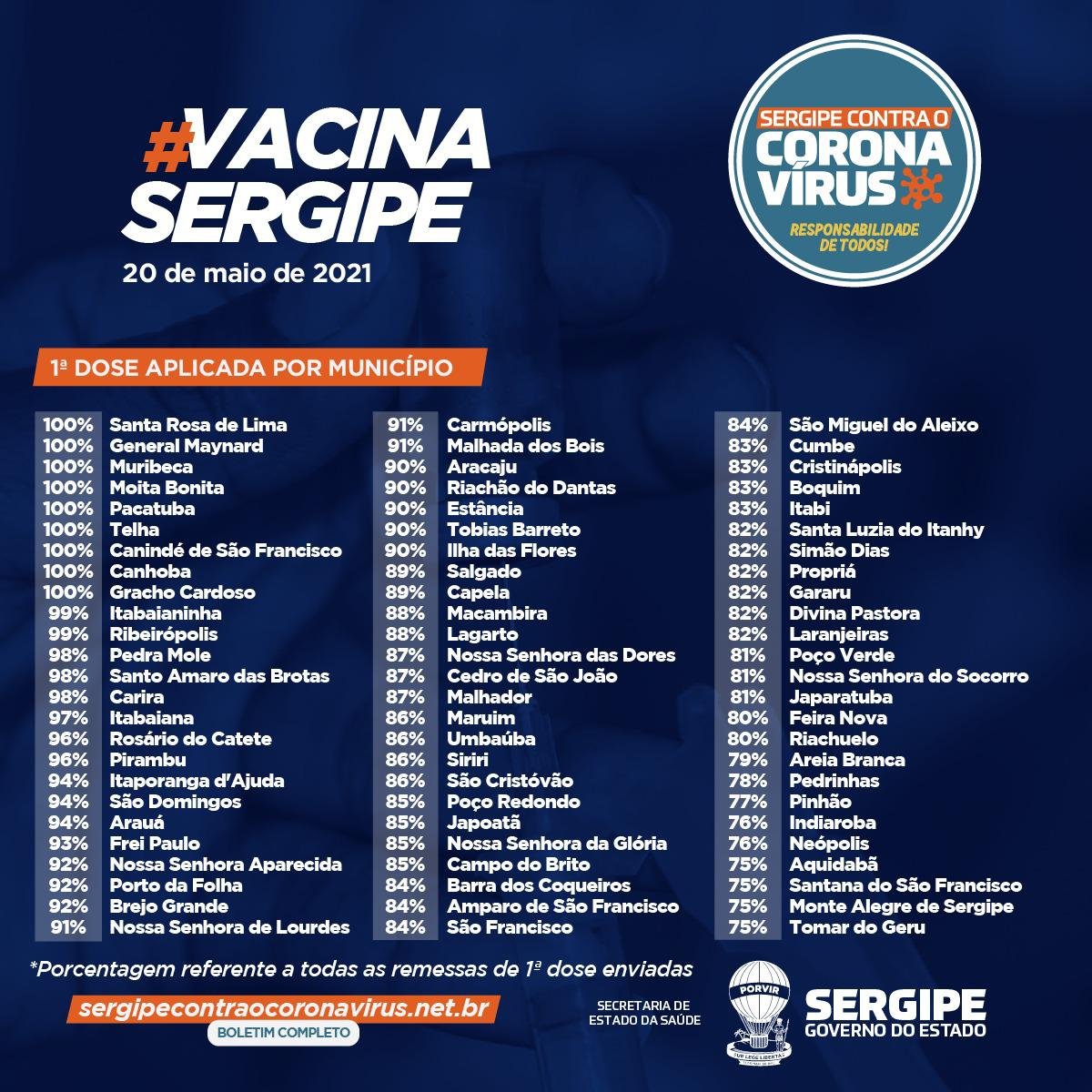 As 29 mortes foram: uma mulher, 86 anos, de Aracaju, com doença cardiovascular crônica; um homem, 77 anos, de Lagarto, com hipertensão, e ex tabagista; um homem, 61 anos, de Aracaju, com diabetes e hipertensão; um homem, 55 anos, Nossa Senhora do Socorro, com pneumopatia crônica; uma mulher, 80 anos, de Riachão do Dantas, com doença cardiovascular crônica e etilismo; um homem, 68 anos, de Lagarto, com doença renal crônica; uma mulher, 61 anos, de Lagarto, sem comorbidade; um homem, 70 anos, de Lagarto, com hipertensão; uma mulher, 94 anos, de Lagarto, com diabetes e hipertensão; um homem, 68 anos, de Lagarto, sem comorbidade; uma mulher, 67 anos, de Lagarto, sem comorbidade; um homem, 63 anos, de Salgado, sem comorbidade; uma mulher, 80 anos, de Tobias Barreto, sem comorbidade; um homem, 55 anos, de Itabaianinha, com etilismo; uma mulher, 40 anos, de Campo do Brito, com hipertensão; um homem, 84 anos, de Itabaiana, ex tabagista; uma mulher, 46 anos, de Itabaianinha, com hipertensão; um homem, 63 anos, de Aracaju, com hipertensão e ex tabagista; um homem, 58 anos, de Aracaju, sem comorbidade; uma criança do sexo feminino, sete anos, de Nossa Senhora da Glória, com doença neuromuscular; uma mulher, 45 anos, de Japoatã, sem comorbidade; uma mulher, 62 anos, de Moita Bonita, sem comorbidade; uma mulher, 51 anos, de Pacatuba, sem comorbidade; uma mulher, 44 anos, de Nossa Senhora do Socorro; com obesidade; uma mulher, 59 anos, de Boquim, com hipertensão; um homem, 102 anos, de Tomar do Geru, sem comorbidade; um homem, 39 anos, de Nossa Senhora do Socorro, com hipertensão, diabetes e obesidade; um homem, 71 anos, de Aracaju, com diabetes e hipertensão; um homem, 58 anos, de Itabaiana, com diabetes e hipertensão.