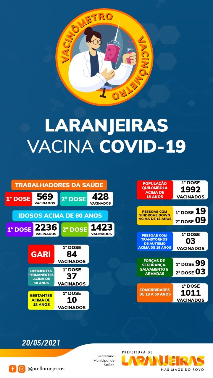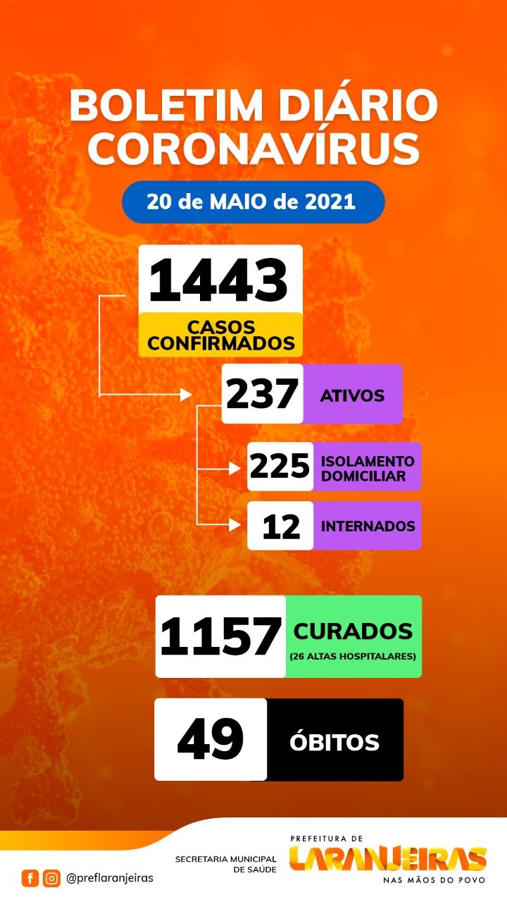 Acompanhe também as informações atualizadas sobre os números da covid-19 em Laranjeiras: