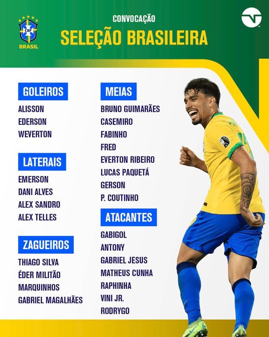 Vale destacar que a lista de convocados contará com 26 jogadores nos treinamentos. Isso pois os meio-campistas Fabinho e Lucas Paquetá estão suspensos para a próxima rodada da competição e não poderão jogar contra o Equador.