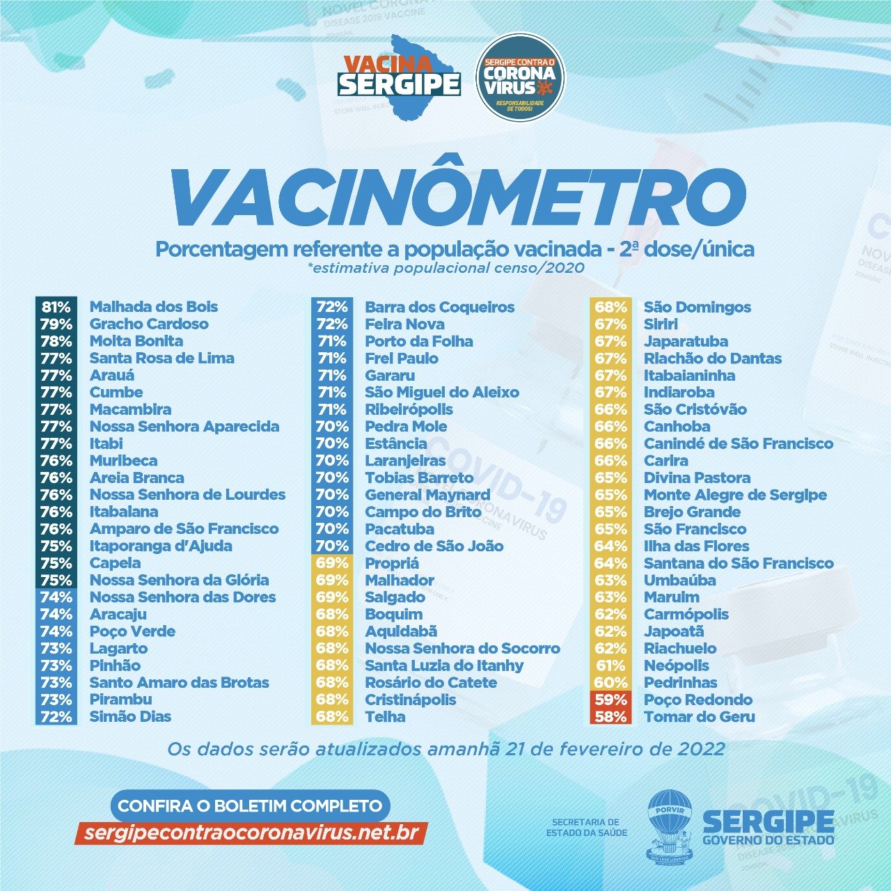 Segundo informações da SES, no total, 318.291 pessoas testaram positivo para a doença e 6.217 morreram em Sergipe.