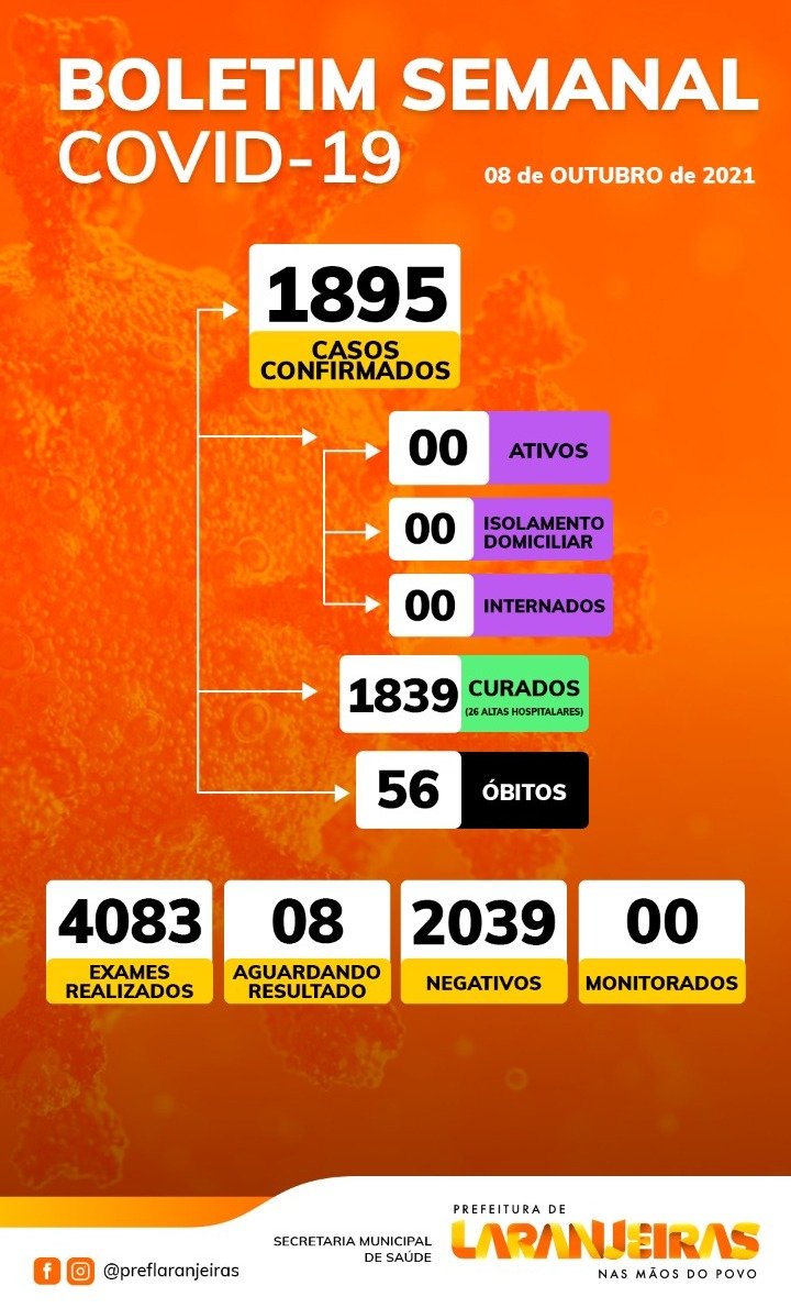 Confira o Beletim informativo sobre a Covid-19 em Laranjeiras: