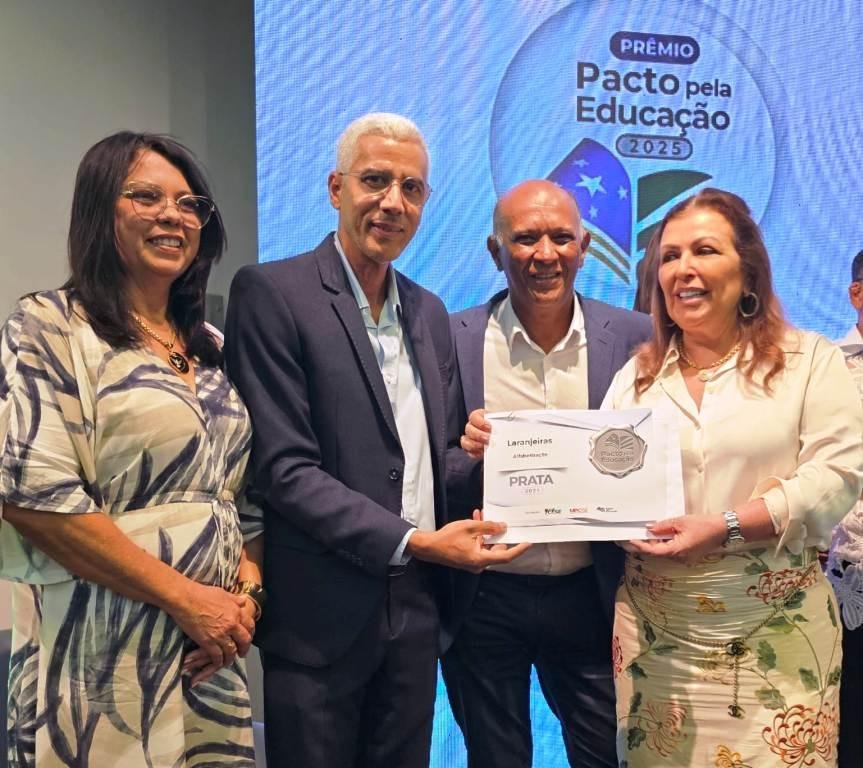 O Tribunal de Contas do Estado de Sergipe (TCE/SE) realizou nesta quarta-feira (19) a cerimônia de premiação do Pacto pela Educação, iniciativa que reconhece municípios com avanços significativos na educação pública. Laranjeiras conquistou o Selo Prata na alfabetização, resultado que evidencia o desempenho acima da média do município nas avaliações do Sistema de Avaliação da Educação Básica de Sergipe (Saese).