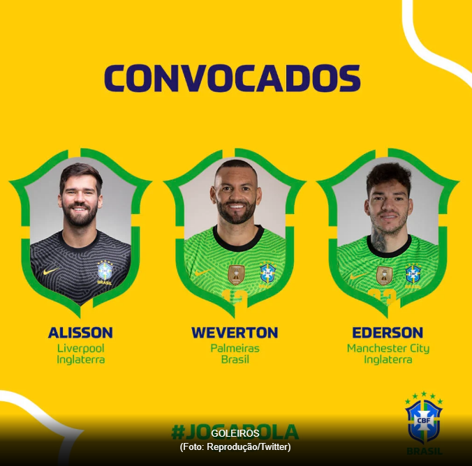 Goleiros: Alisson (Liverpool), Ederson (Manchester City) e Weverton (Palmeiras)