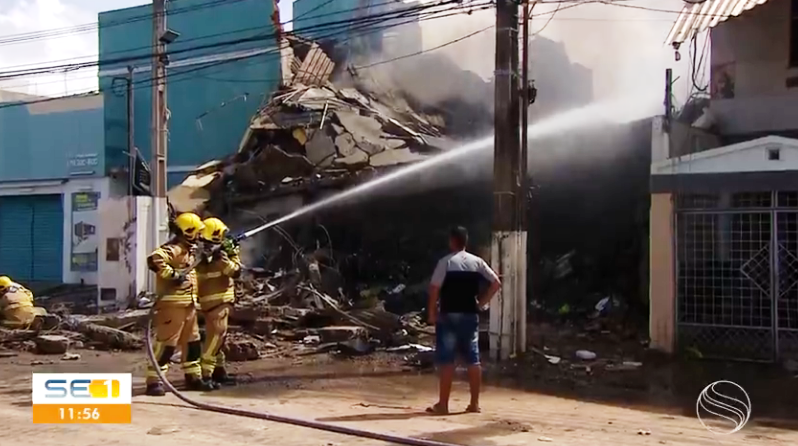 Profissionais voluntários atuam para elaborar laudo de imóveis atingidos por prédio que desabou durante incêndio em Aracaju. Segundo engenheiro, o laudo deve ficar pronto em uma semana.